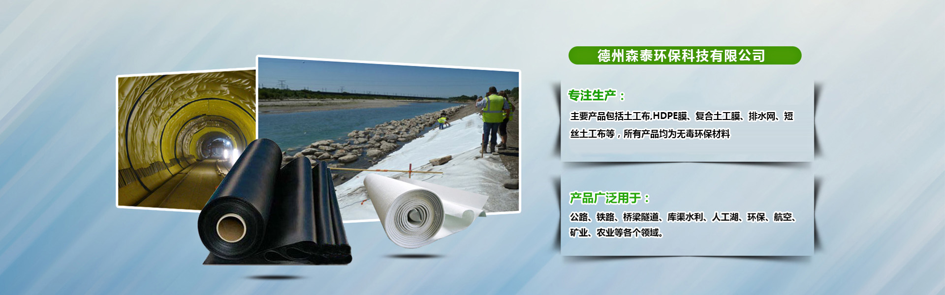 寰峰窞媯嘲鐜繚縐戞妧鏈夐檺鍏徃錛屾.娉扮幆淇濅笓娉ㄤ簬姘村埄銆佺幆澧冨強鐢熸佷慨澶嶆妧鏈爺鍙戝強浜у搧鍒墮狅紝騫舵湁涓撲笟鐨勬柦宸ュ伐紼嬫妧鏈湇鍔″洟闃熴傚凡瀹屾垚姘村埄宸ョ▼100澶氶」錛岀幆澧冨伐紼?00澶氶」錛屽吀鍨嬪伐紼嬪寘鎷崡姘村寳璋冨伐紼嬨佷笁宄″伐紼嬨佹還娌辨渤闃叉笚宸ョ▼錛屼繚瀹氱幆鍩庢按緋誨伐紼嬨佹祹鍗楀瀮鍦懼~鍩嬪満宸ョ▼錛屾鏋楀瀮鍦懼~鍩嬪満宸ョ▼銆佸ぇ鍚岀數(shù)鍘傞槻娓楀伐紼嬨佸槈鍏寸伀杞︾珯闃叉笚宸ョ▼銆侀粦榫欐睙鍐滃灕闃叉笚宸ョ▼絳夈傛.娉扮幆淇濅富瑕佷駭鍝佸寘鎷湡宸ュ竷,HDPE鑶溿佸鍚堝湡宸ヨ啘銆佹帓姘寸綉銆佺煭涓濆湡宸ュ竷絳夛紝鎵鏈変駭鍝佸潎涓烘棤姣掔幆淇濇潗鏂欙紝鍙箍娉涘簲鐢ㄤ簬錛?.鐜淇宸ョ▼錛堢伯椋熷熀鍦板湡澹ゆ敼鑹佸伐涓氬満鍦般佺熆涓氥佹按浣撶瓑宸ョ▼銆佽敩鑿滃ぇ媯?鍏繪畺錛岀妞嶇瓑錛?.姘村埄宸ョ▼錛堟睙娌蟲按搴撱佸牑鍧濈殑闃叉笚鍔犲浐銆佹按娓犵殑闃叉笚銆佹姢鍧$瓑錛夊強甯傛斂闃叉笚錛堝湴閾併佸緩絳戠墿鐨勫湴涓嬪伐紼嬨佺妞嶅眿闈€佸眿欏惰姳鍥殑闃叉笚銆佹薄姘寸閬撳唴琛瓑錛?.....